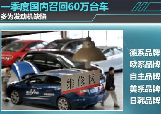 一季度国内召回60万台车 多为发动机缺陷