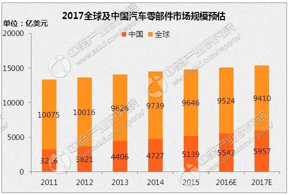 《2015-2020年中国汽车零部件市场潜力与投资前景分析报告》指出,2011-2015年中国汽车零件市场的营业额按复合年增长率12.4%,并将于2015年至2017年进一步按复合年增长率7.6%增长